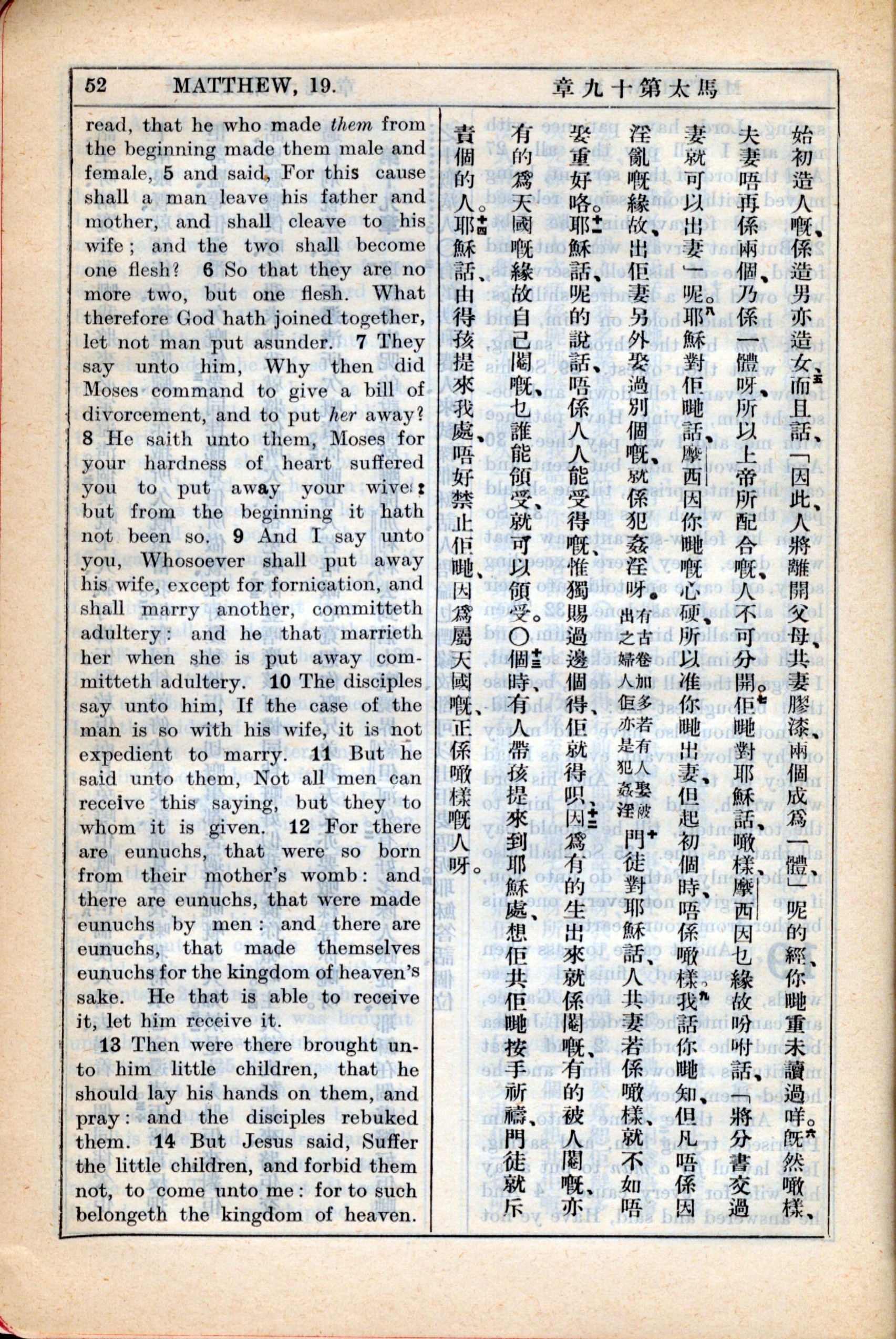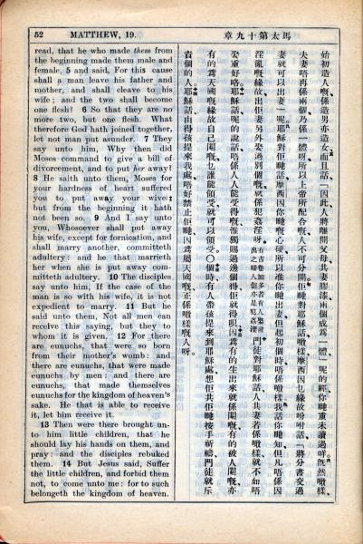 1931年新約全書廣東話新譯本與美國新譯英文 馬太福音 9 章 4 節到 9 章 14 節