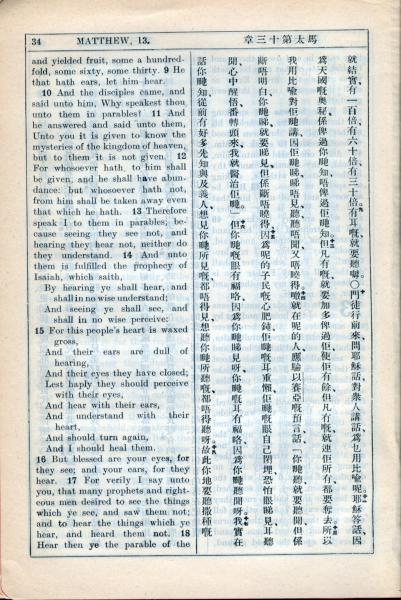 1931年新約全書廣東話新譯本與美國新譯英文 馬太福音 13 章 9 節到 13 章 18 節
