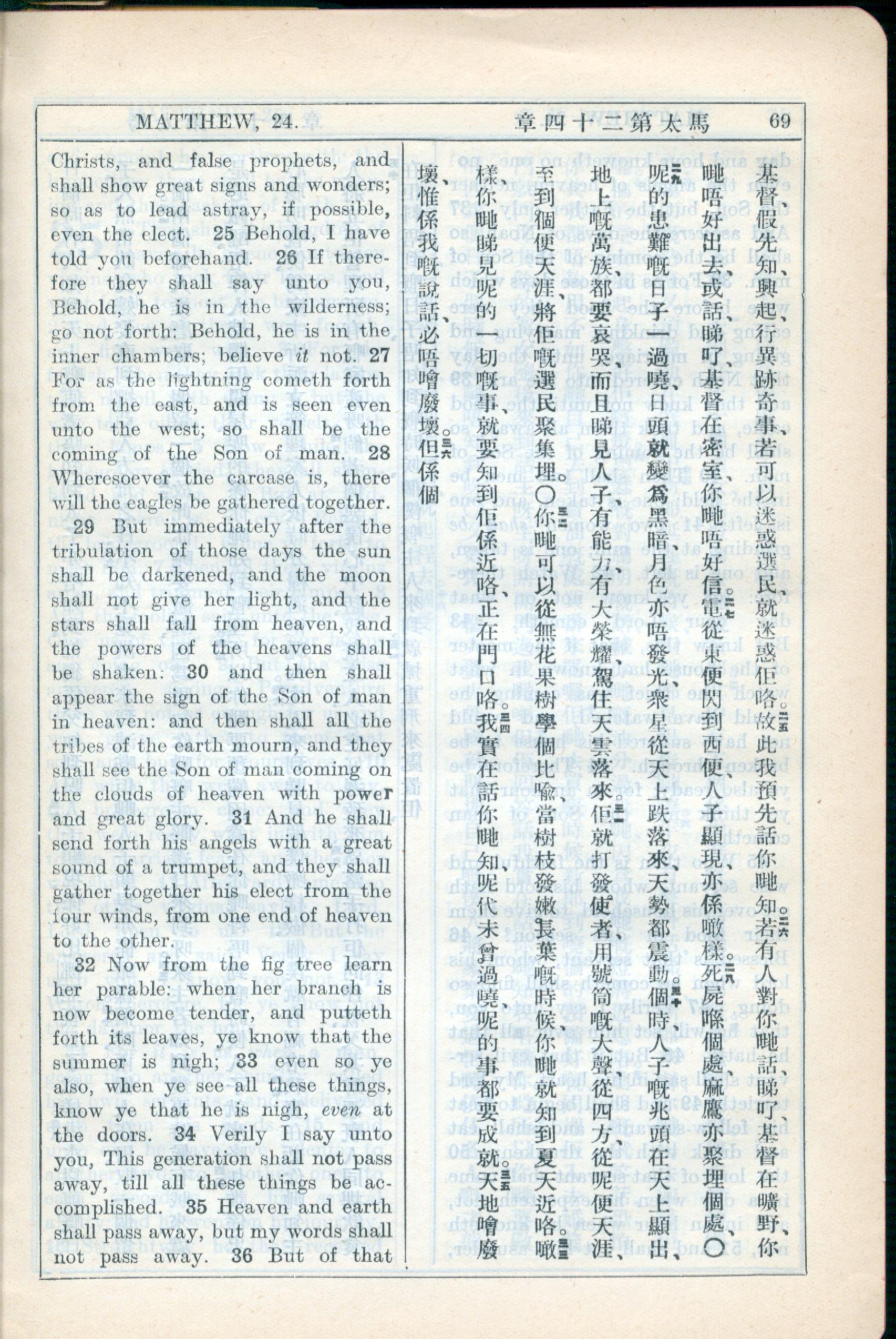 1931年新約全書廣東話新譯本與美國新譯英文 馬太福音 24 章 24 節到 24 章 35 節