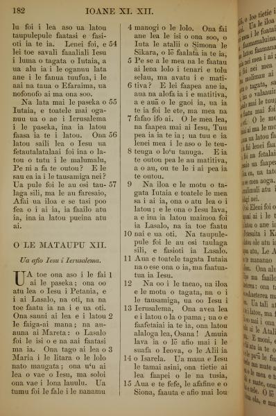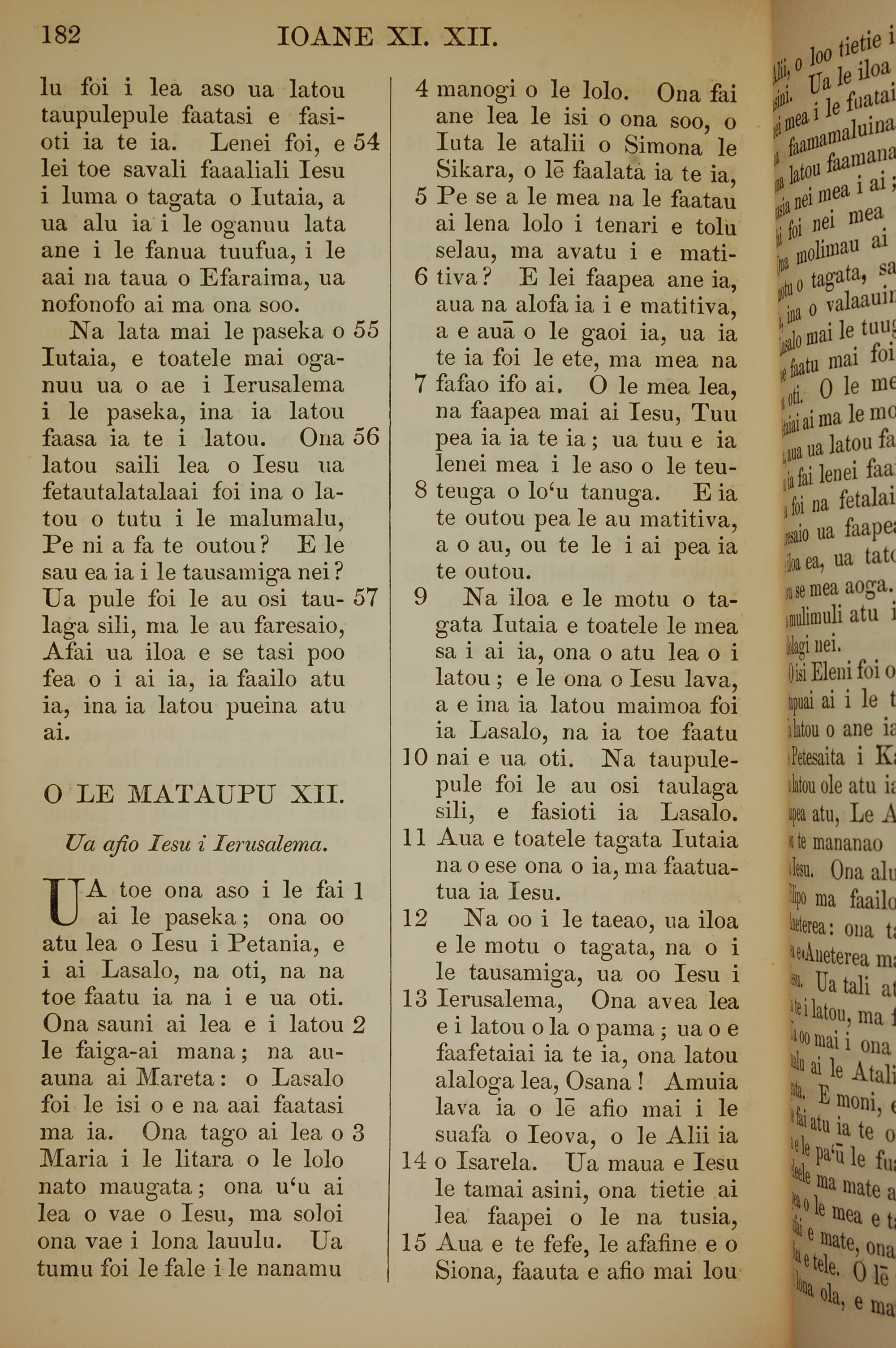 1849年薩摩亞語新約全書 約翰福音 11 章 54 節到 12 章 15 節