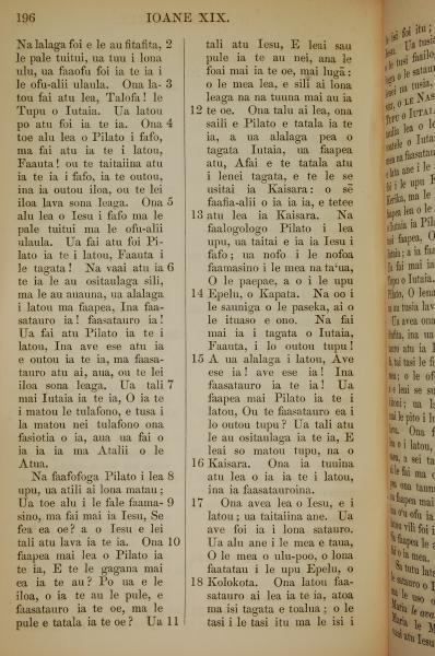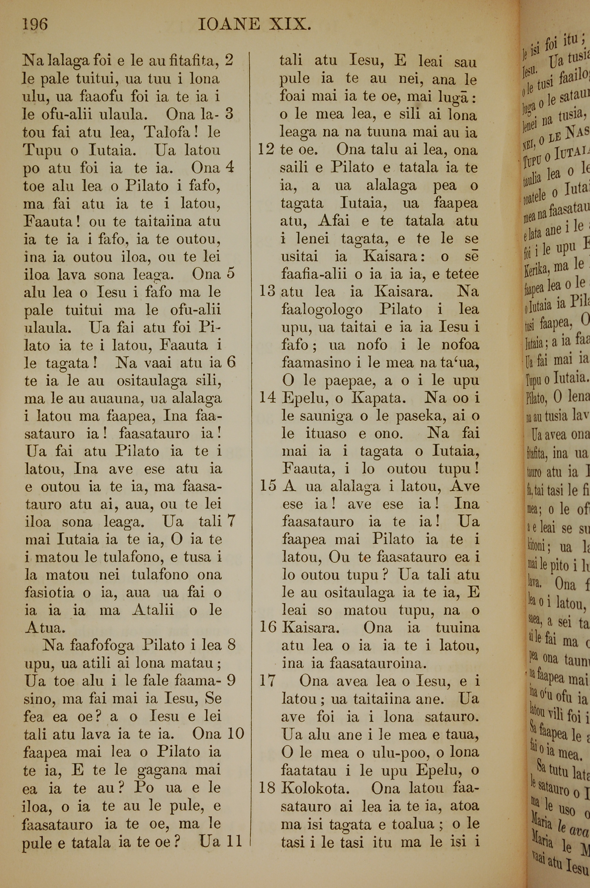 1849年薩摩亞語新約全書 約翰福音 19 章 2 節到 19 章 18 節