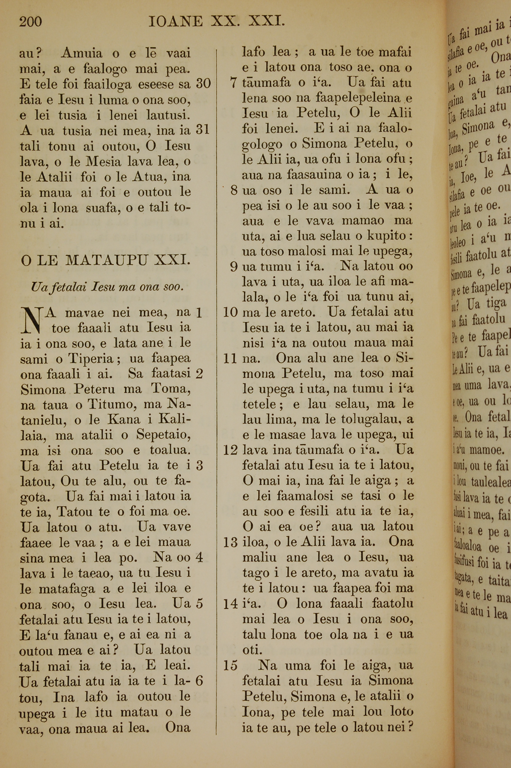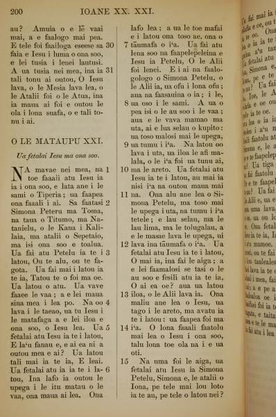 1849年薩摩亞語新約全書 約翰福音 20 章 30 節到 21 章 15 節