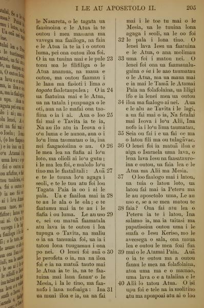 1849年薩摩亞語新約全書 使徒行傳 2 章 23 節到 2 章 40 節