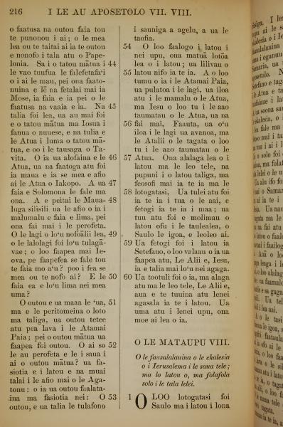 1849年薩摩亞語新約全書 使徒行傳 7 章 44 節到 8 章 1 節