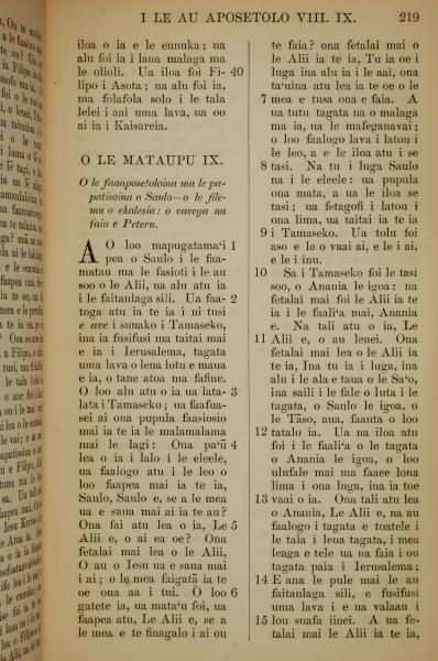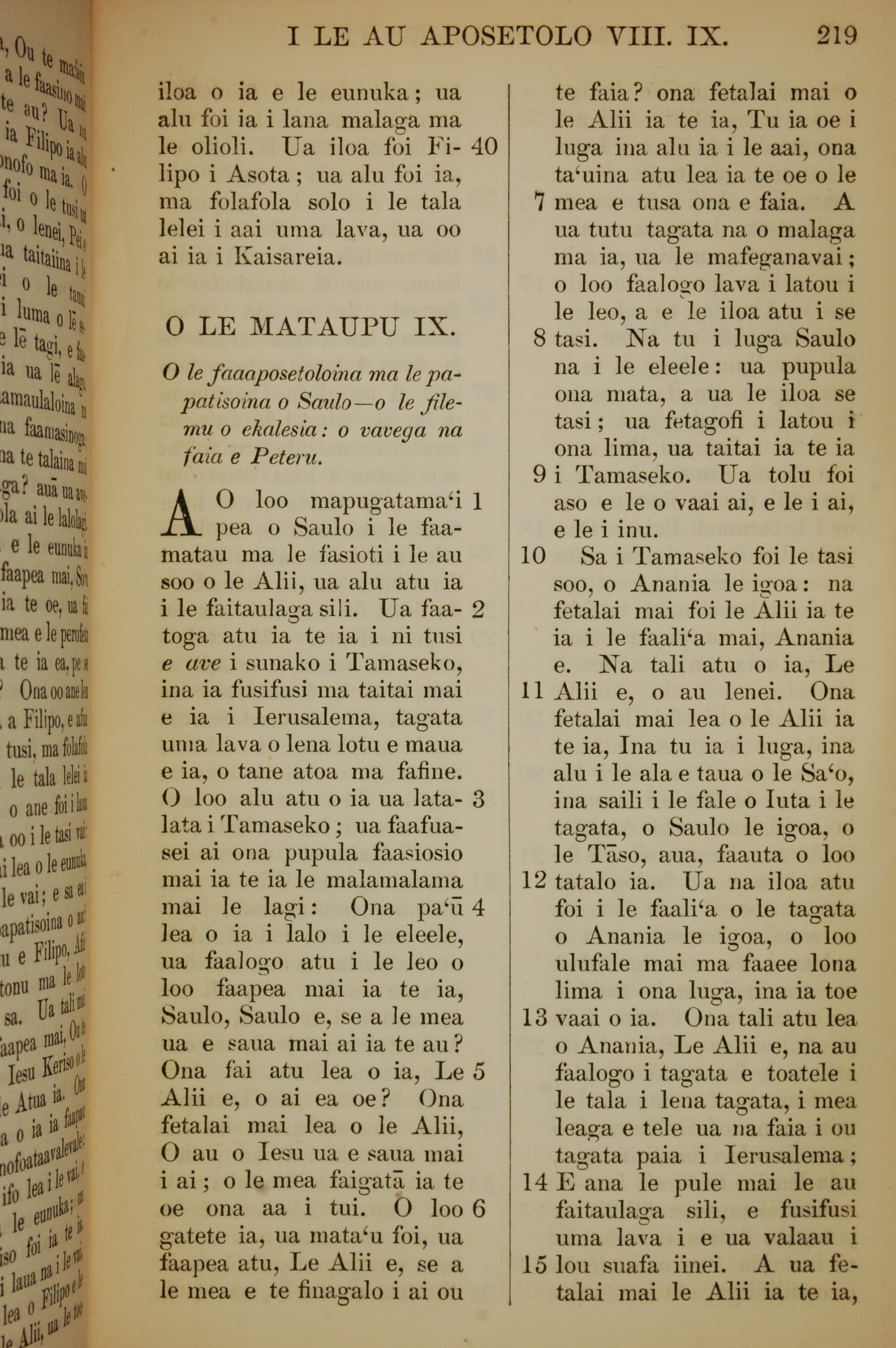 1849年薩摩亞語新約全書 使徒行傳 8 章 40 節到 9 章 15 節