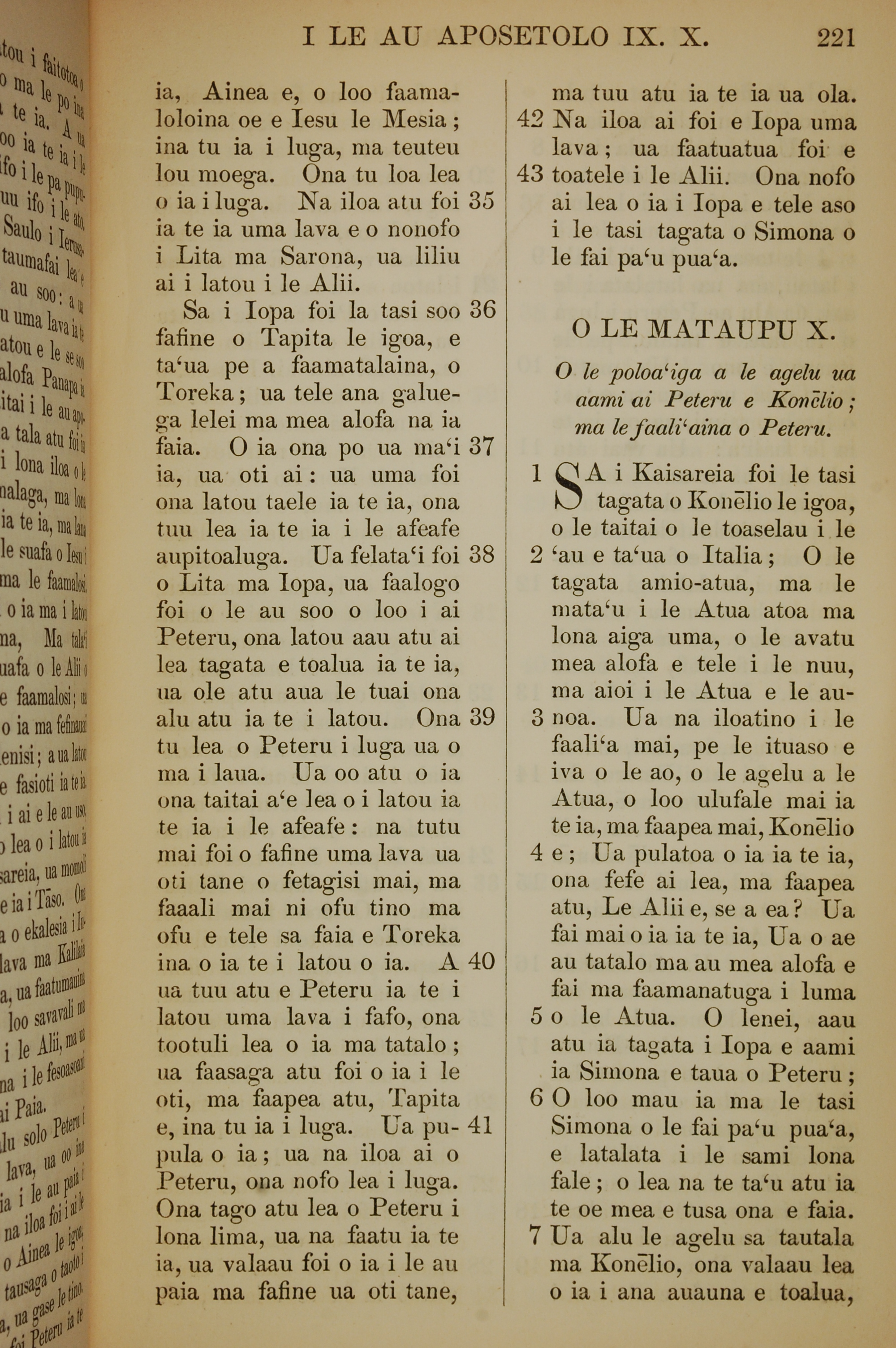 1849年薩摩亞語新約全書 使徒行傳 9 章 35 節到 10 章 7 節