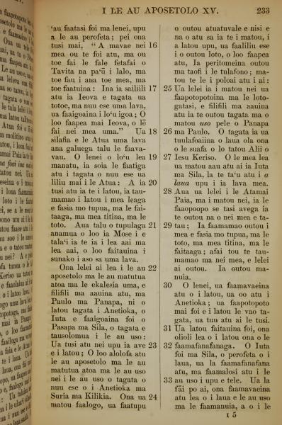 1849年薩摩亞語新約全書 使徒行傳 15 章 16 節到 15 章 33 節