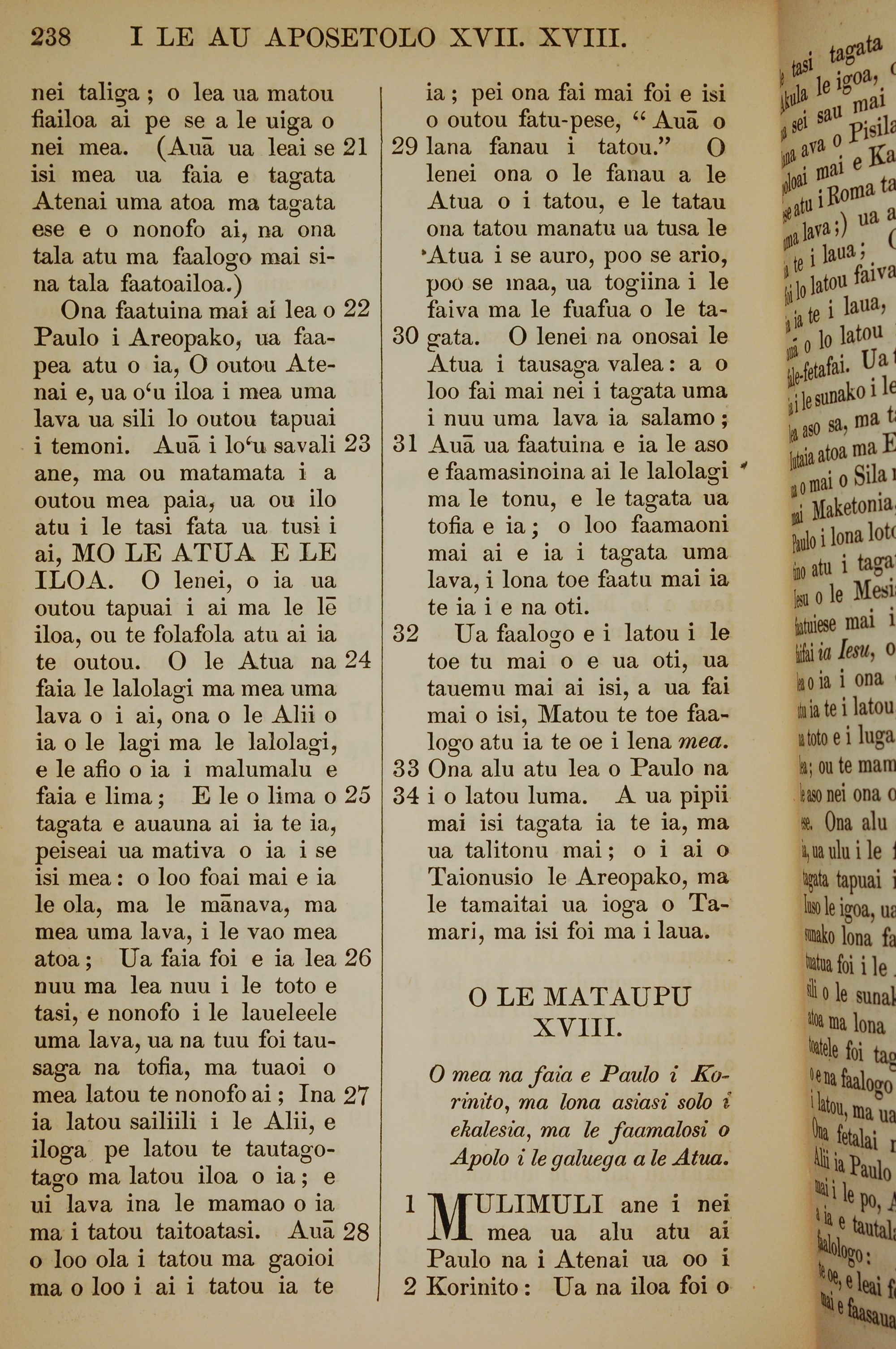 1849年薩摩亞語新約全書 使徒行傳 17 章 21 節到 18 章 2 節